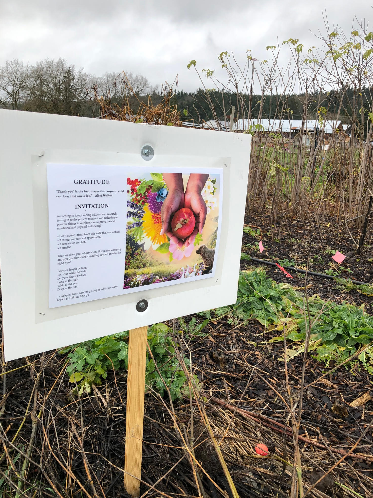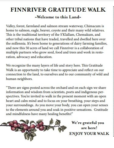 Be inspired by a self-guidedCare & Gratitude Walk through Finnriver Orchard.