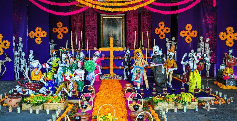 Día de los muertos (Day of the Dead) is a multi-day Mexican holiday, where people gather to pay respects and to remember friends and family members who have died. Generally celebrated on November 1st and 2nd, families visit the cemeteries where their loved ones are buried and clean and decorate their graves with ofrendas (altars), often including the favorite foods and drinks of the deceased. The altars often include orange marigolds, which are thought to attract the souls of the dead to the offerings. It is also believed the strong smelling flowers can guide the souls from cemeteries to their family homes. El Dia De Los Muertos is a celebration to remember loved ones that have passed and it is a celebration of life for the living.