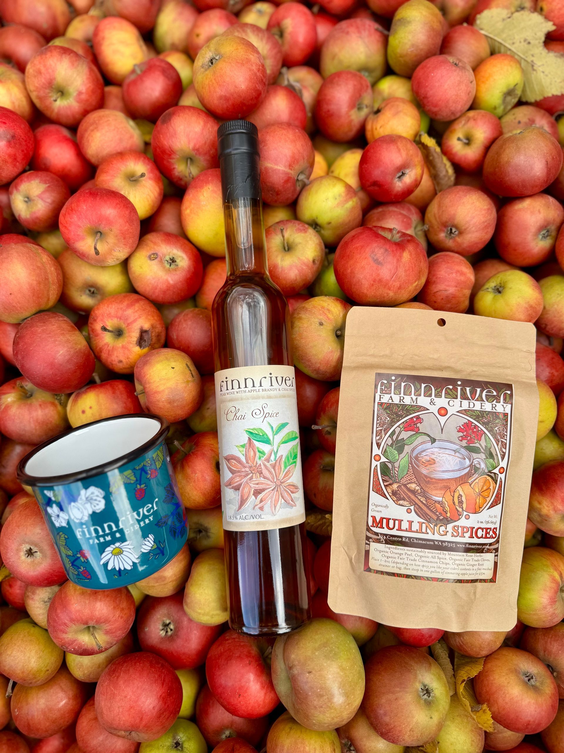 Give the gift of warmth and flavor this season. This set features a handcrafted Finnriver enamel camp mug adorned with the botanicals from our ciders, a bottle of our popular Chai Brandywine, and organic mulling spices to infuse every cup with cozy, spiced notes. Perfect for sipping by the fire or sharing a moment with friends, it’s a gift that’s both sweet and warmly spiced!