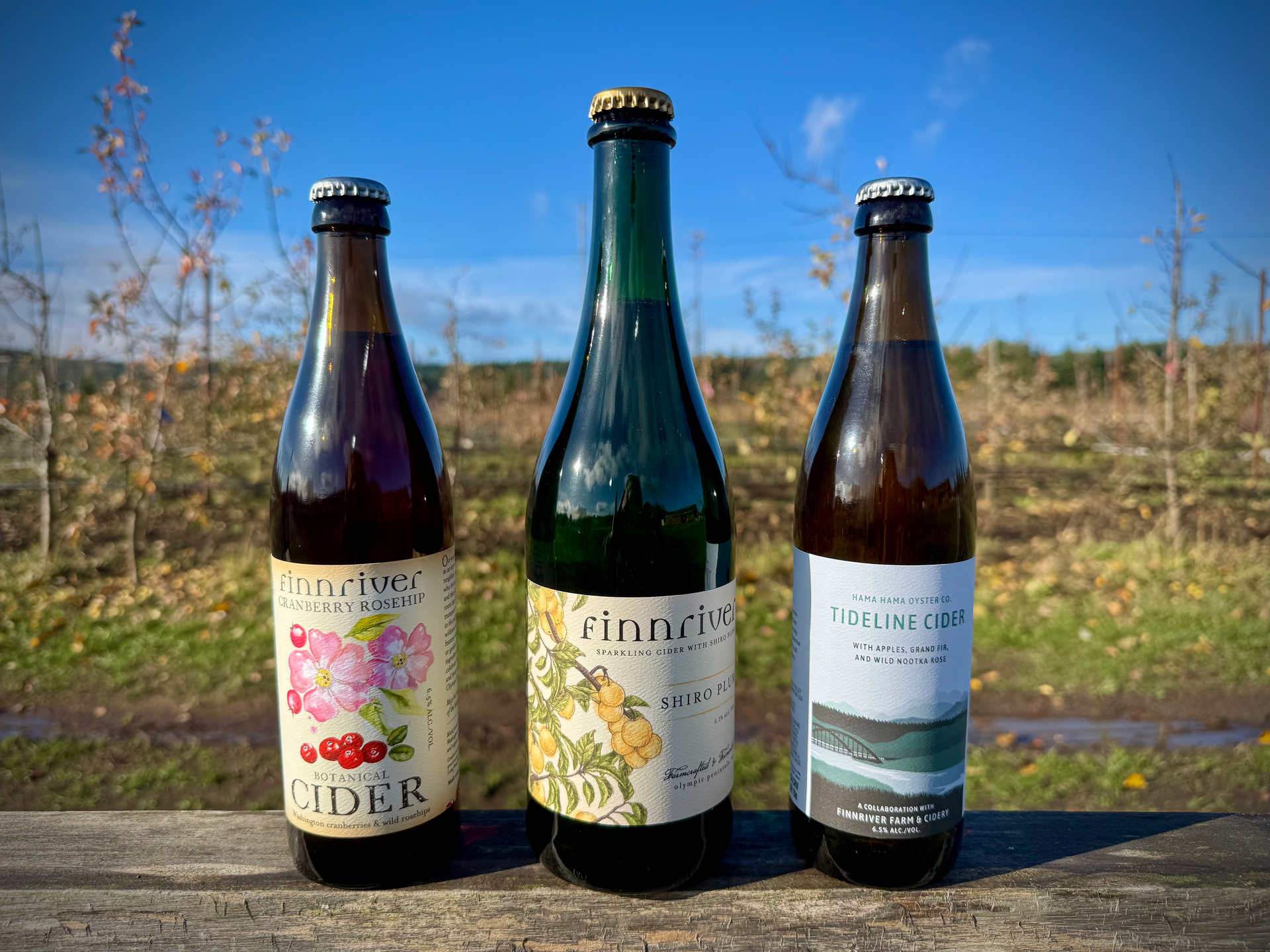 Raise a glass to 15 years of farmcrafted cider made right here on the Olympic Peninsula with organic fruit and wild-foraged botanicals. Made with high-acid organic Golden Russet apples and botanicals native to Hama Hama's watershed, Tideline is a bright and briny reminder of the bivalve-bearing beaches nourished by the Salish Sea. Shiro Plum offers faint floral aromas, followed by a crisp character of plums and hints of honey. Wild-foraged Shiro plums were hand-picked from the Olympic forests and co-fermented with locally harvested apples to curate a cider that showcases the short and sweet stone fruit season in Washington. Cranberry Rosehip reflects the heritage of native rosehips that burst alongside the roads and waters of the Olympic Peninsula.