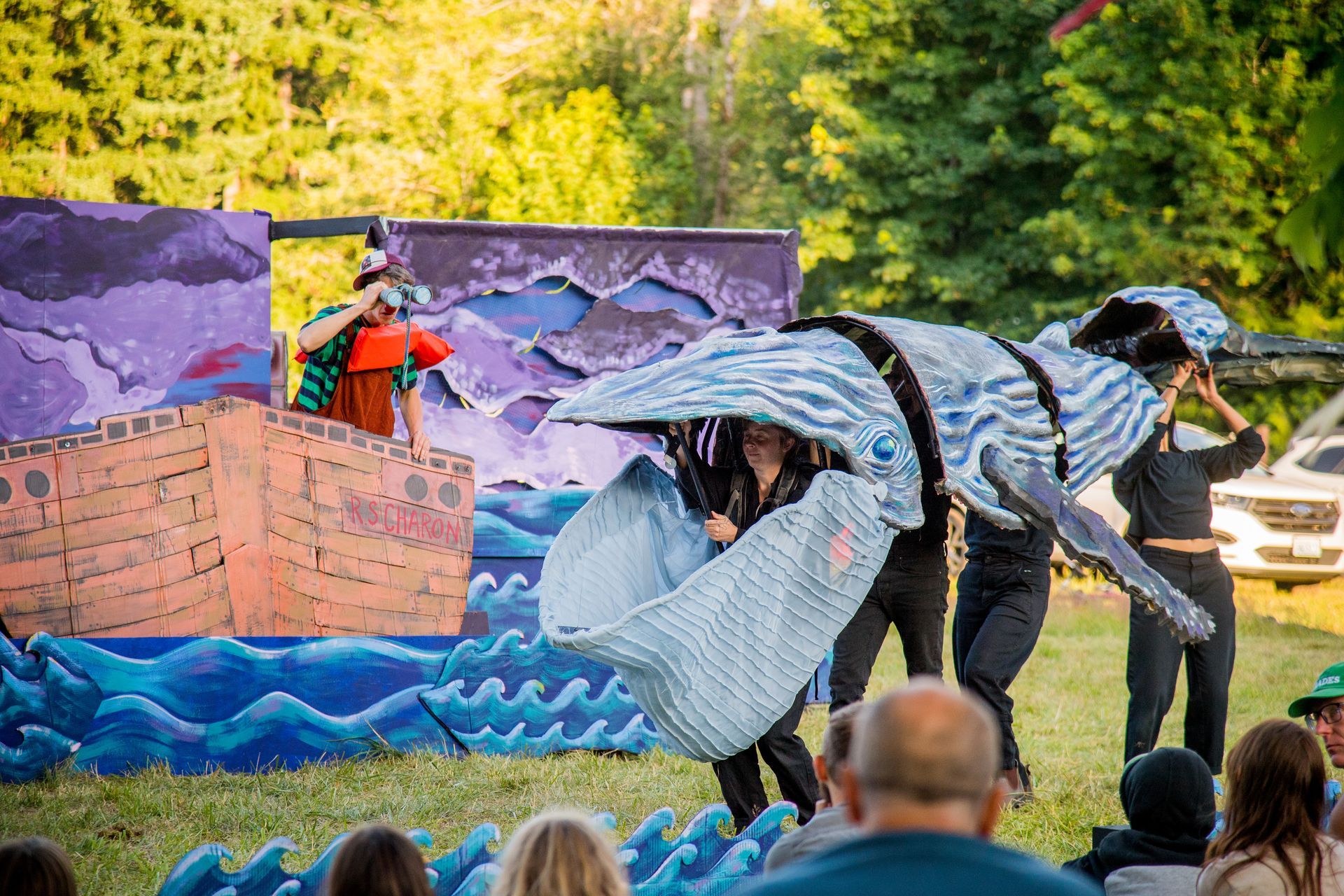 String and Shadow is back with a new amazing show! In "Ship of Fools: A Giant Puppet Odyssey" 3 mimes set sail from the Port of Styx across the mythical boundary waters connecting the world of the living to the underworld. Aboard a mysteriously sentient ship, they encounter a world of beautiful and strange creatures: hermit crabs carrying houses on their backs, a ghostly humpback whale, and much more. Under layers of colorful fabric and dancing cardboard, Ship of Fools deals with themes of loss and acceptance, depicting a wondrous unknown and speaking to the power of friendship and love. It is brought to life by 3 mimes, 3 musicians, and 6 puppeteers.
