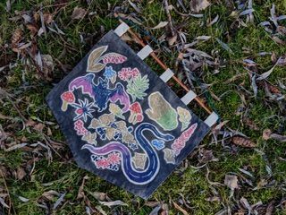 jewelry · needle felting · hand-blown glass · nature-based illustrations and artwork · ceramics · Japanese textiles · embroidered clothing · stained glass · leather goods · locally-made shrubs and salves · wildcrafted medicinal herbs and oil infusions · crochet toys · woodworking