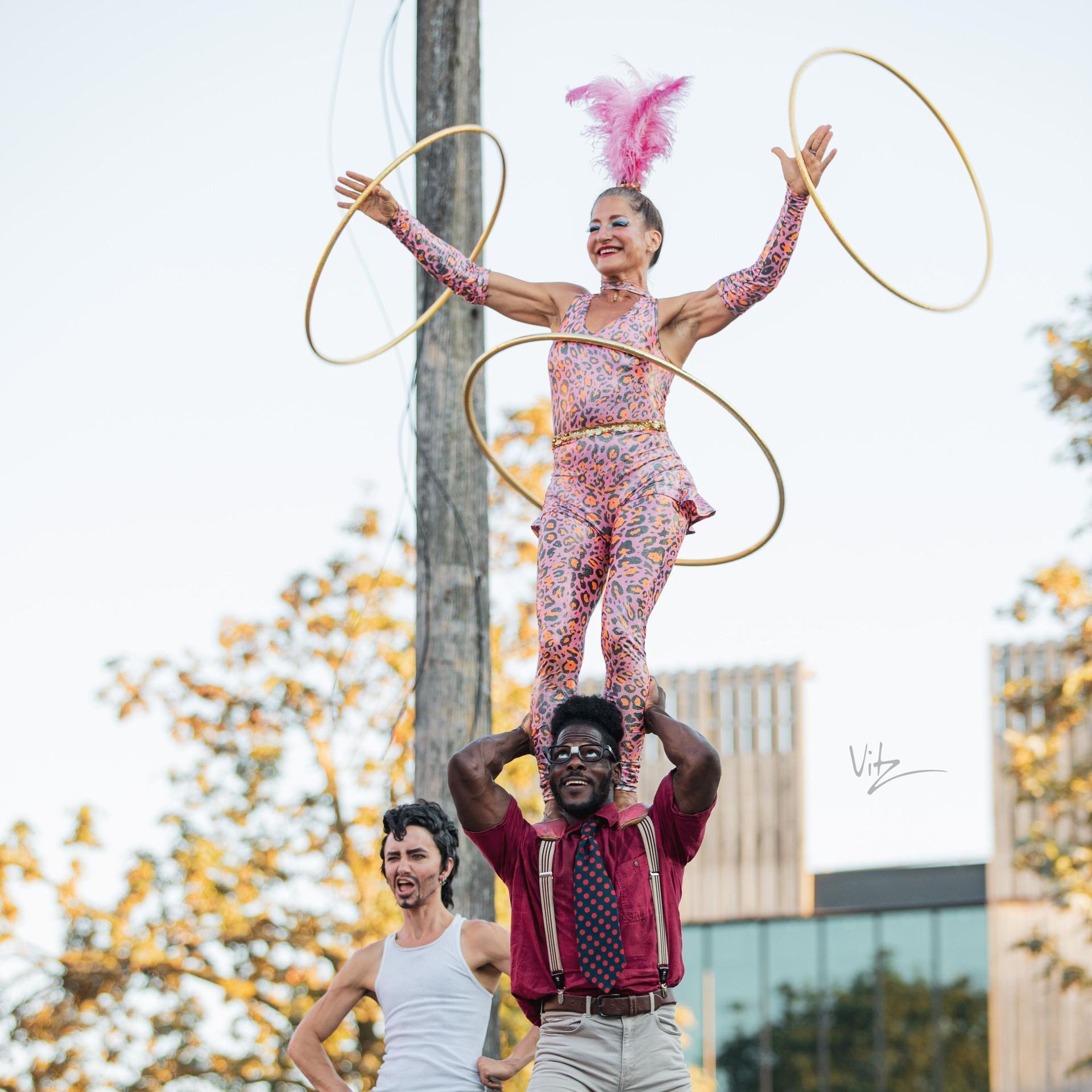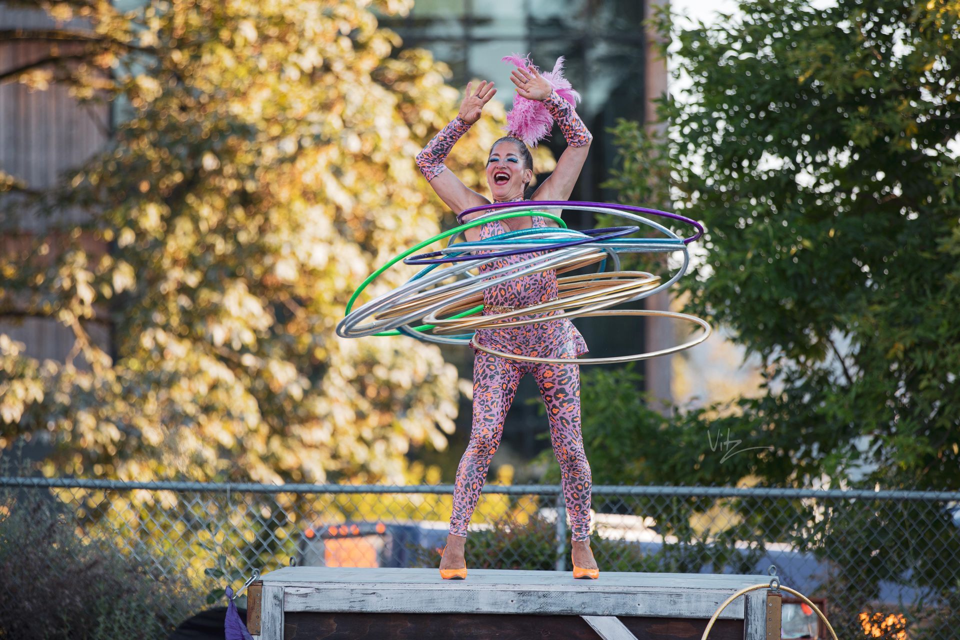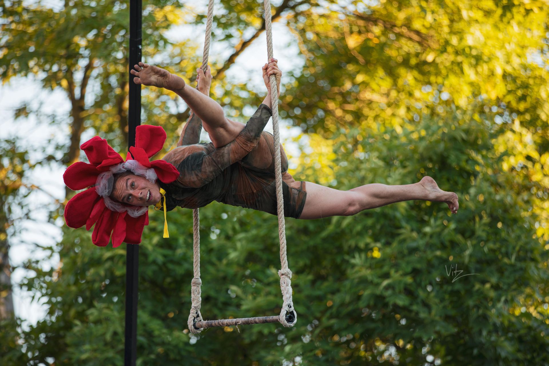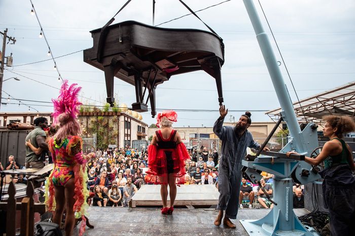 UP UP UP inc.! The Crane Truck Circus is a touring show of aerialists, musicians, acrobats, clowns and illusionists whose goal is to bring joy and levity into the air for underserved communities, with audiences ranging from outdoor events and small farms, to tribal centers and their communities, refugee groups and children’s grief camps, as well as to nursing homes and women's shelters. With a portable stage on their truck, a baby grand piano for live music, and a mounted 30’ hand cranked crane, they bring giggles, gasps and delight to all who behold them.